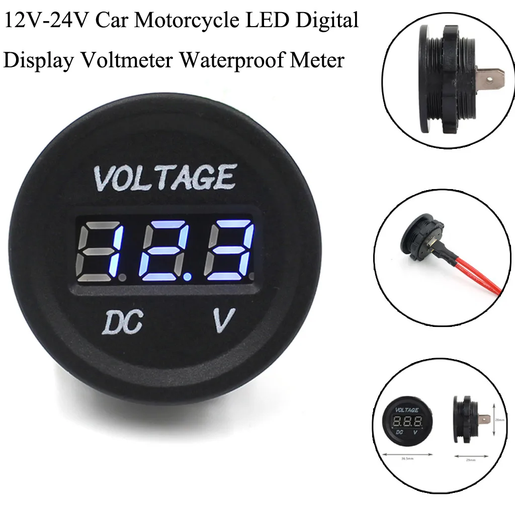 12V-24V автомобиль мотоцикл светодиодный цифровой Дисплей вольтметр Водонепроницаемый метр