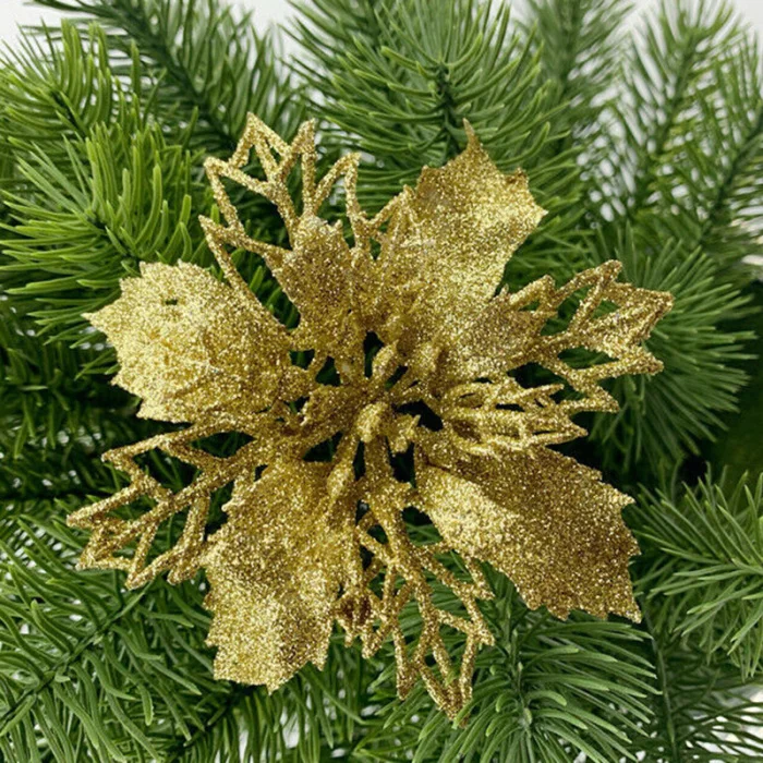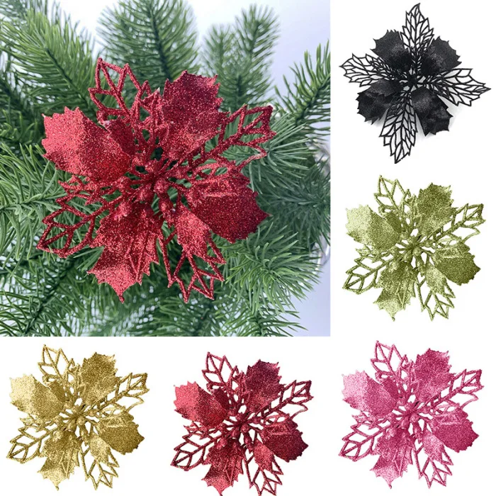 Экономичная Рождественская пуансеттия 10 шт. блестящий цветок полое Дерево Висячие украшения для вечерние ds99