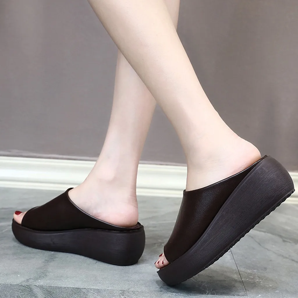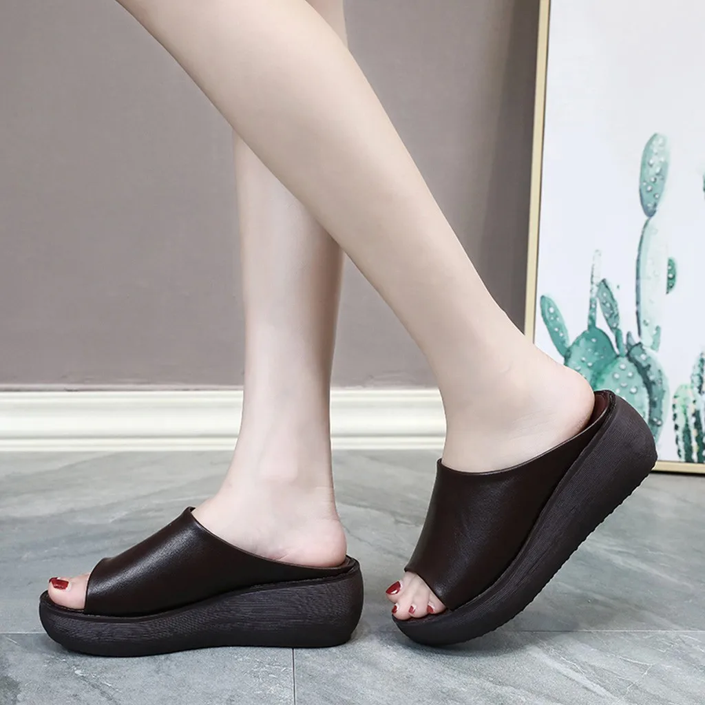 Модные женские летние дышащие сандалии без шнуровки на плоской подошве с открытым носком обувь на платформе