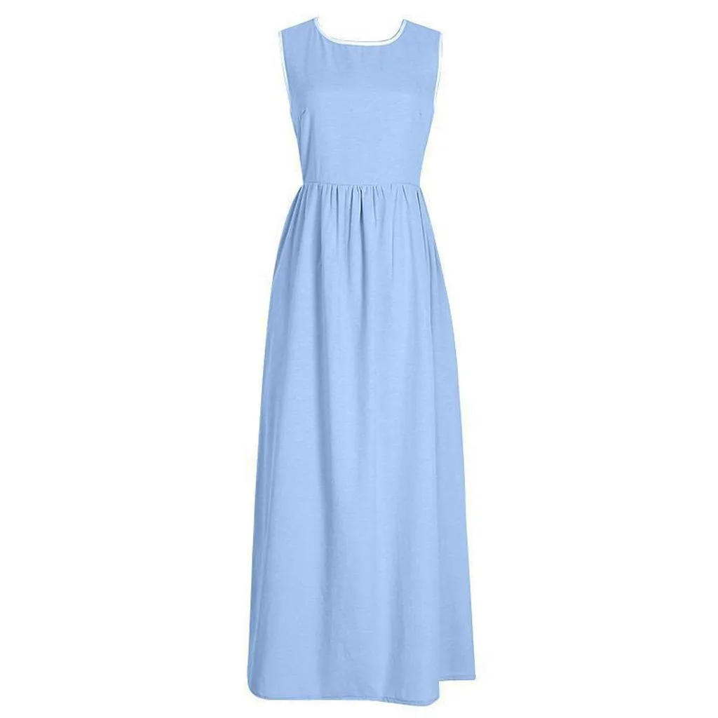 Женское повседневное элегантное одноцветное Свободное длинное платье с круглым вырезом без рукавов длиной до щиколотки