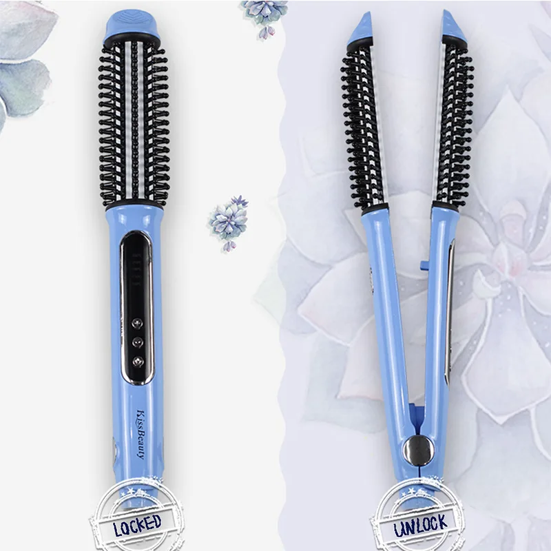 2 в 1 выпрямитель для волос Щетка антистатическая керамическая нагревательная распутывающая щетка для более быстрого выпрямления бороды расческа для ЖК-дисплея 100-240 В