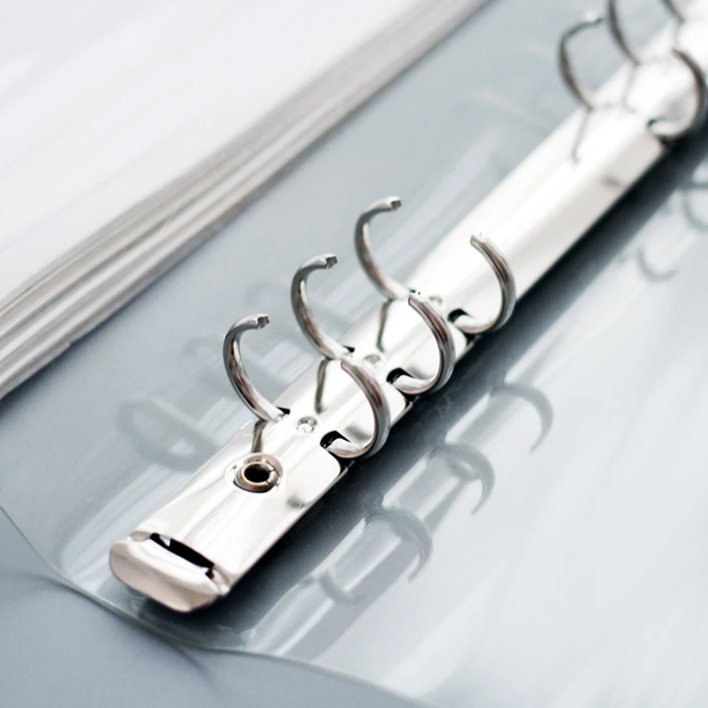-Прозрачная Обложка из ПВХ с защелкой для безопасного закрывания, шесть никелированных открытых и закрывающих механизма для легкого добавления или удаления страниц и безопасного удержания страниц.