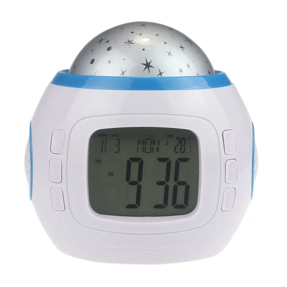 Музыкальный светодиодный проектор звездного неба, цифровой будильник, календарь, термометр для детей, Новинка
