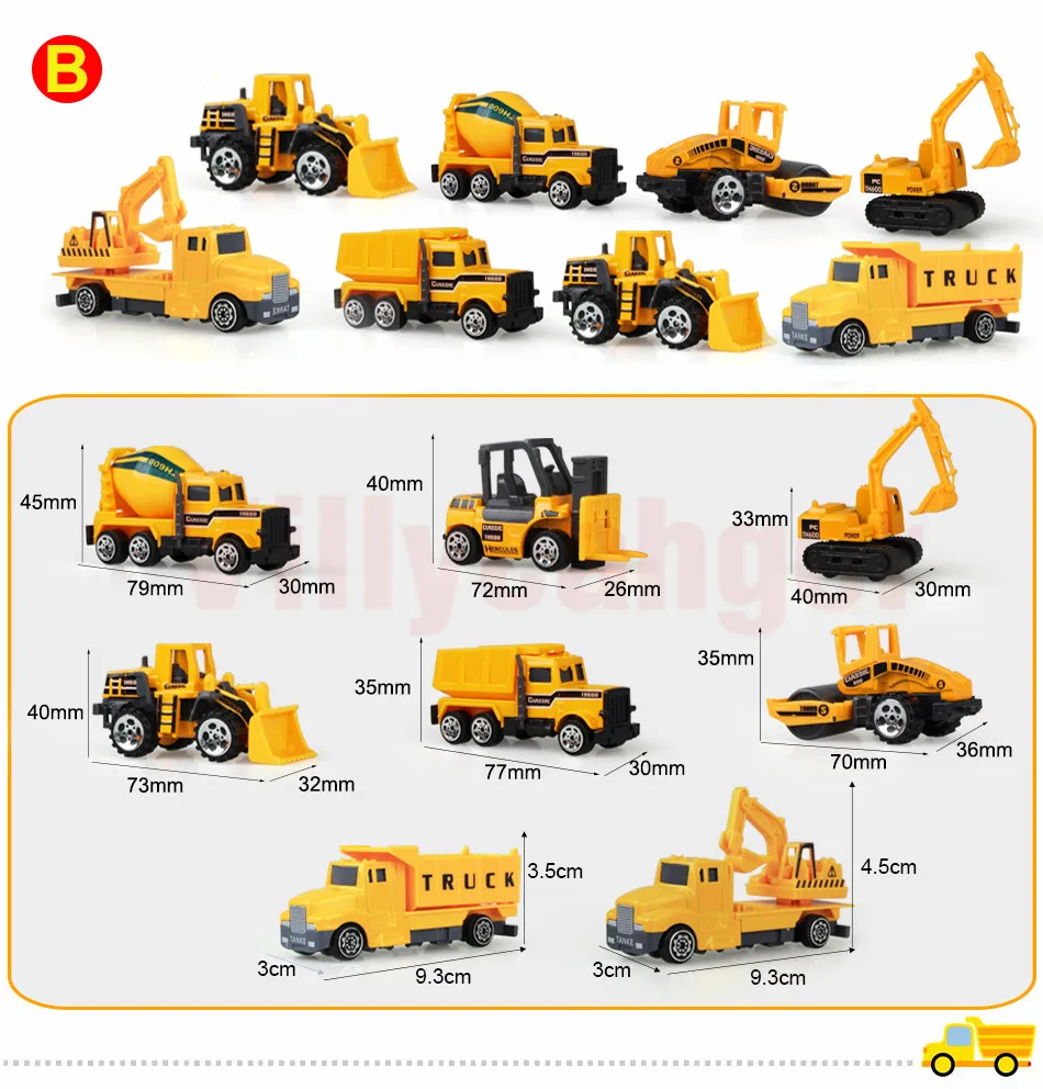 A: литой инженерный грузовик * 8 B: литой инженерный грузовик * 8 C: литой инженерный грузовик * 6 и большой грузовик * 1 D: литой инженерный грузовик * 11 и большой грузовик * 1