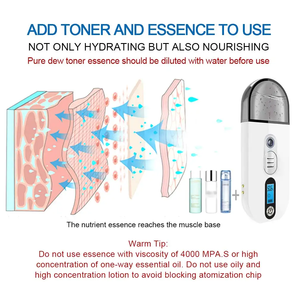 Описание: Описание: Цвет: белый Модель: L1810 Светильник ing: Встроенный светодиодный светильник Размер изделия: 14*5*2 см Напряжение: DC-3.7V Вход: 5V 1A Емкость: 28 мл Питание: зарядка через USB Введение функции: 1. Используя высокоскоростную вибрационную технологию, вода превращается в ультратонкие частицы, которые могут быстро проникать из рогового слоя в закупорку и быстро восстанавливать влагу на коже. Он используется для обслуживания частей всего тела, тела, волос и других частей. 2. Этот продукт оснащен функцией тестирования кожи, которая может понять состояние кожи в любое время и выполнить соответствующую гидратацию. Светодиодный дисплей показывает недовольство выражением, что означает, что воды недостаточно, и вода должна быть пополнена. Отображается Счастливое выражение, затем ОК Примечания: 1. Этот продукт рекомендуется использовать минеральную воду (минеральную воду). Обычно не рекомендуется использовать чистую воду, дистиллированную воду, водопроводную воду и т. д., которая будет собирать капли воды. Не добавляйте густую жидкость, такую как эфирное масло, чтобы предотвратить засорение или капель воды. 2. Пожалуйста, используйте воду в резервуаре для воды одновременно. Запрещено использовать его на ночь, в противном случае порт распыления будет легко заблокирован. 1. Использование технологии нано-распыления для уменьшения количества молекул воды с использованием ультразвуковой технологии вибрации для разбивания молекул воды в туман, кожа с большей вероятностью впитывает и быстро проникает в кожу, чтобы компенсировать влагу. 2. Без шума, без перерывов. Встроенный светодиодный Ночной светильник, теплее в темное время суток. 3. Мгновенный туман, вторая скорость гидратации, тонкий туман и воздух интегрированы. 4. Этот продукт оснащен функцией тестирования кожи, которая может понять состояние кожи в любое время и выполнить соответствующую гидратацию. Светодиодный дисплей показывает недовольство выражением, что означает, что воды недостаточно, и вода должна быть пополнена. Отображается Счастливое выражение, затем ОК 5. Изделие небольшого размера, легко переносится, увлажняет и увлажняет в любом месте и не занимает места. Комплектация: счетчик воды * 1, usb-кабель для передачи данных * 1, руководство пользователя на английском языке * 1