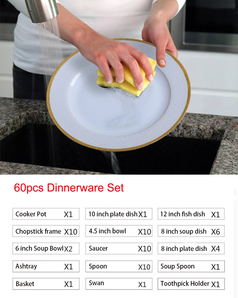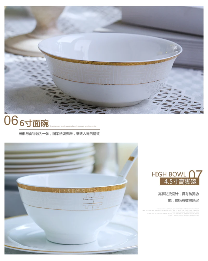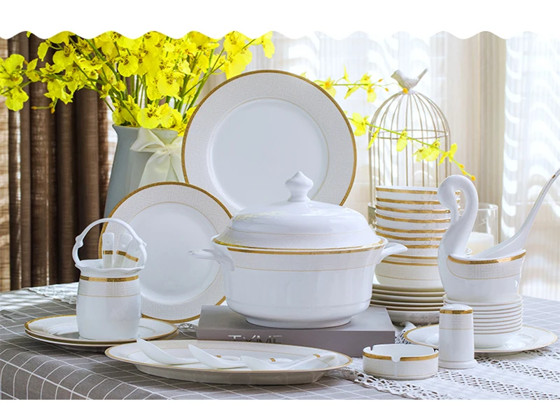 Цзиндэчжэнь Высококачественная Европейская костяная китайская посуда набор посуды чаши для дома 60 шт керамическая посуда тарелки кастрюли набор