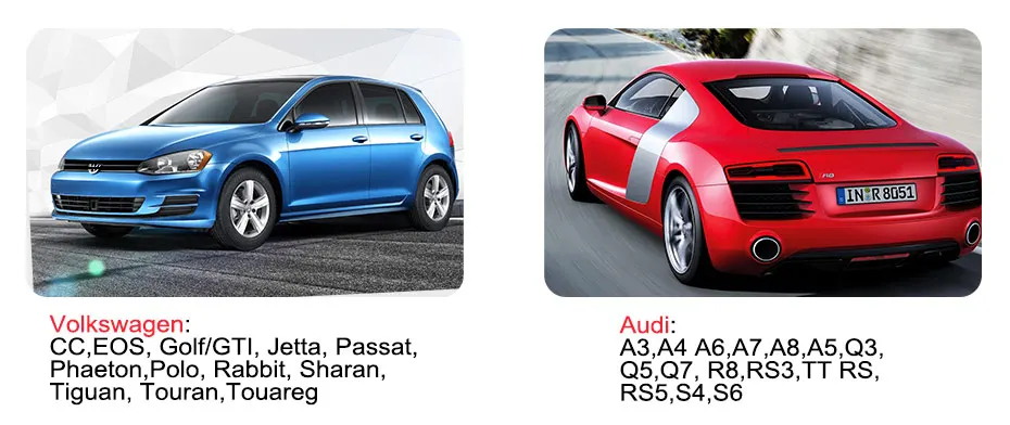 1. Для автомобилей Volkswagen до 2019 года 12В CC, EOS, Golf, GTI, Jetta, Passat, Phaeton, Polo, Rabbit, Sharan, Tiguan, Touran, Touareg и т. д. 2. Для Audi до 2019 года 12В автомобилей, A3, A4, A6, A7, A8, A5, Q3, Q5, Q7, R8, RS3, TT, RS, RS5, S4, S6 и т. д. 3. Для Skoda до 2019 года 12В автомобилей, Octavia, Rapid, Yeti, Kodiaq, Fabio, Superb и т. Д. 4. Для сидений до 2019 года 12В автомобилей; Leon, Ateca, Ibize, Altea, Cushion, Cord, Alhambra и т. д.