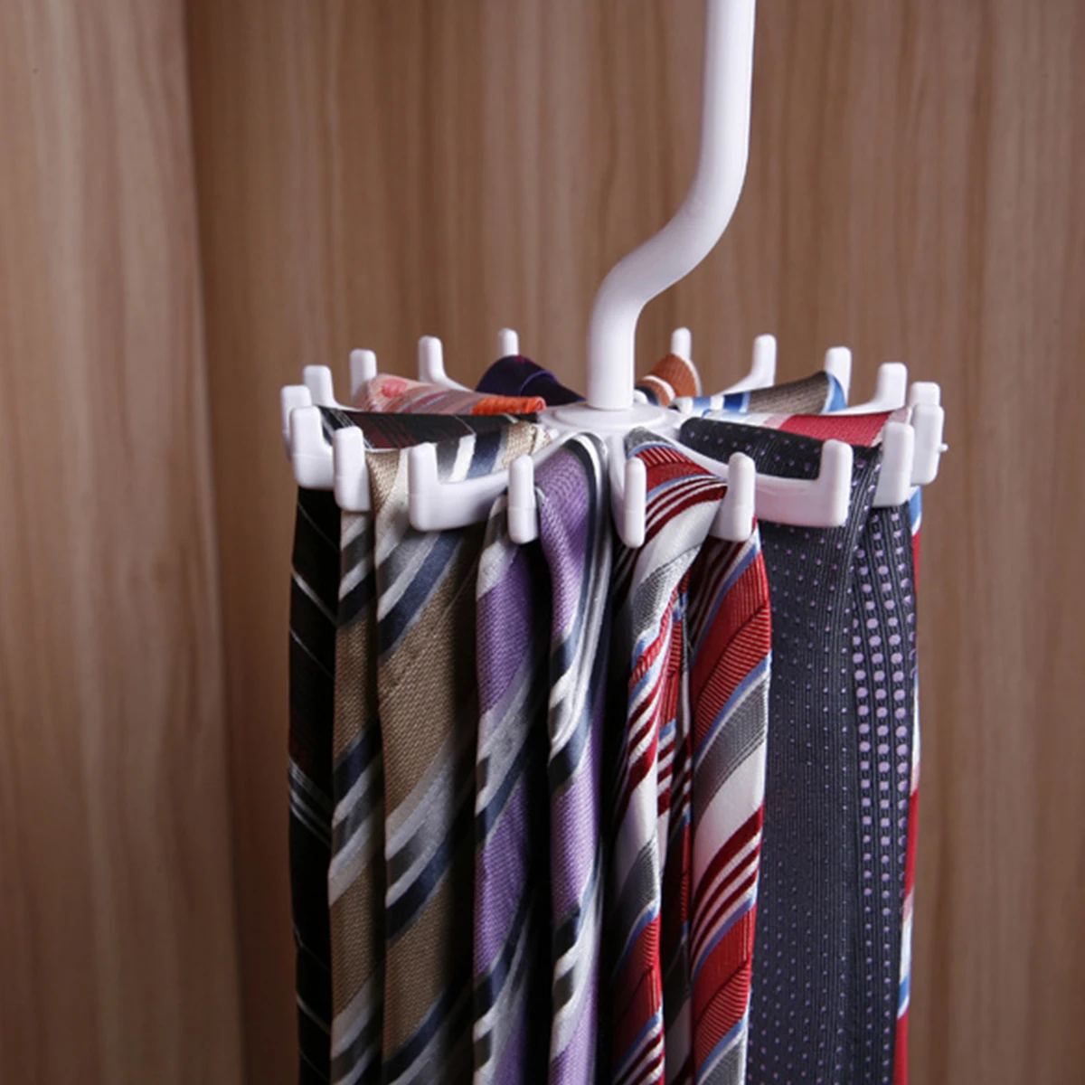 Параметры: 100% Новый бренд Удерживайте до 20 галстуков или ремней Вы также можете повесить ремни Функция вращения на 360 градусов Идеально подходит для мужчин с большим количеством галстуков Цвет на выбор: черный, белый Размер: около 11 см x 11 см (Dia. x H) Материал: Пластик Посылка включает в себя: 1 шт. x полка для галстука