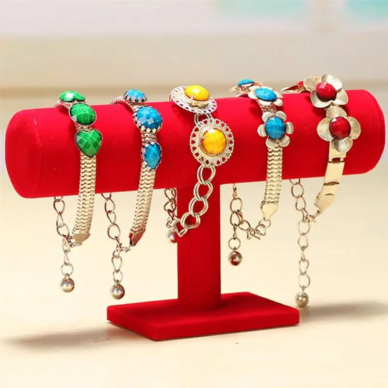 Бархатный Дисплей Стенд Домашний Органайзер для часов браслет ожерелье (красный)