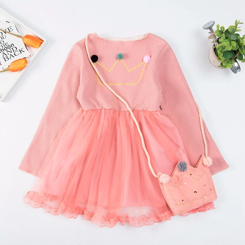 Тюлевое платье для маленьких девочек 12 мес.-5 лет, комплекты с сумочкой, однотонные платья в стиле пэчворк с короной, 2020 новое платье принцессы, повседневная одежда для маленьких девочек