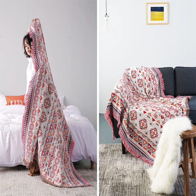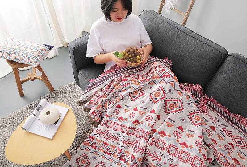 Богемное трикотажное одеяло для дивана с геометрическим принтом, многофункциональный домашний декор, текстильные настенные покрывала