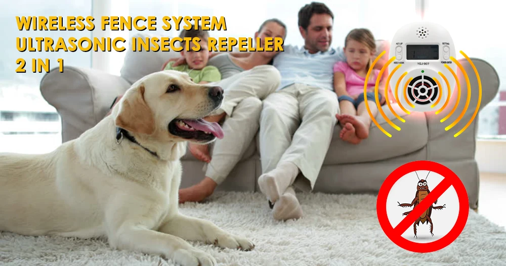 YQJ-907 с внутренней беспроводной системой управления барьером для домашних животных и ультразвуковые электронные средства защиты от насекомых 2 в 1 Функция: