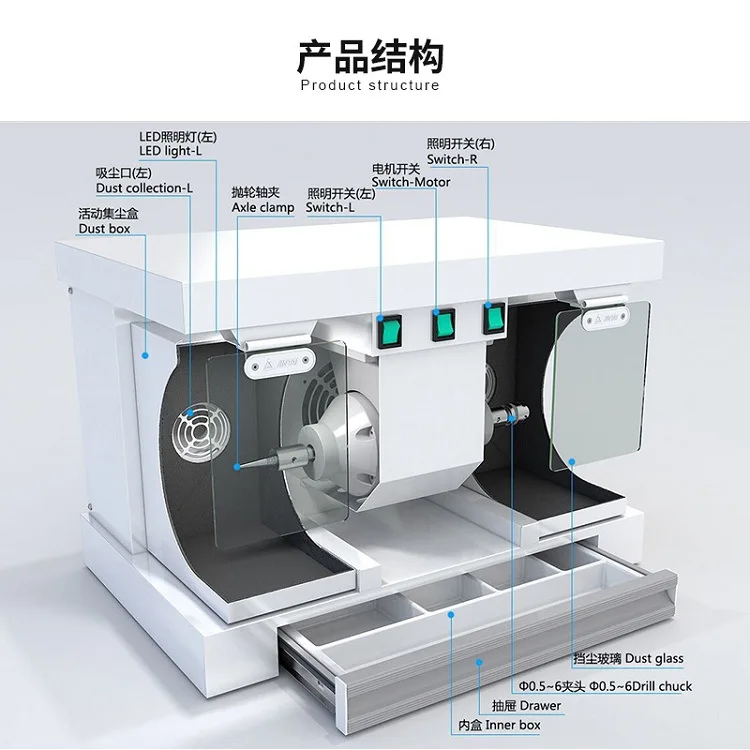 Стоматологическое лабораторное оборудование Стоматологическая шлифовальная машина полировальный токарный станок с зубными ящиками пыли