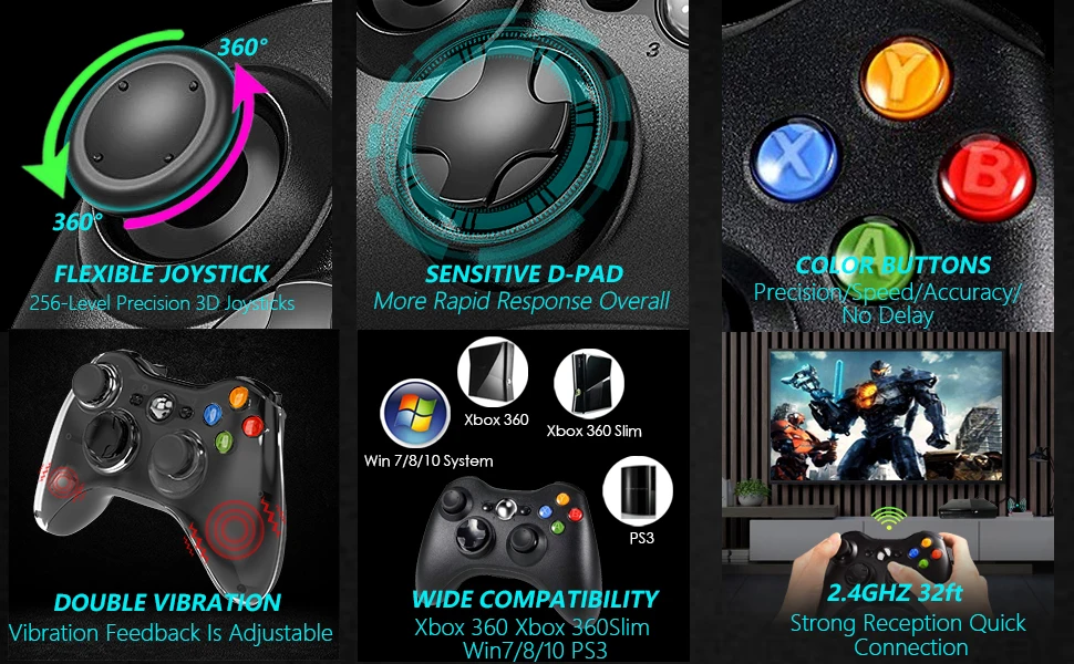 Этот беспроводной контроллер совместим с Xbox 360 и Slim , PS3 и большинством ПК с Win 7/8/10, обеспечивая последовательный и универсальный игровой опыт. Более удобным является Подключение к ПК, просто подключите приемник. (Примечание: контроллер не предназначен для XBOX ONE).