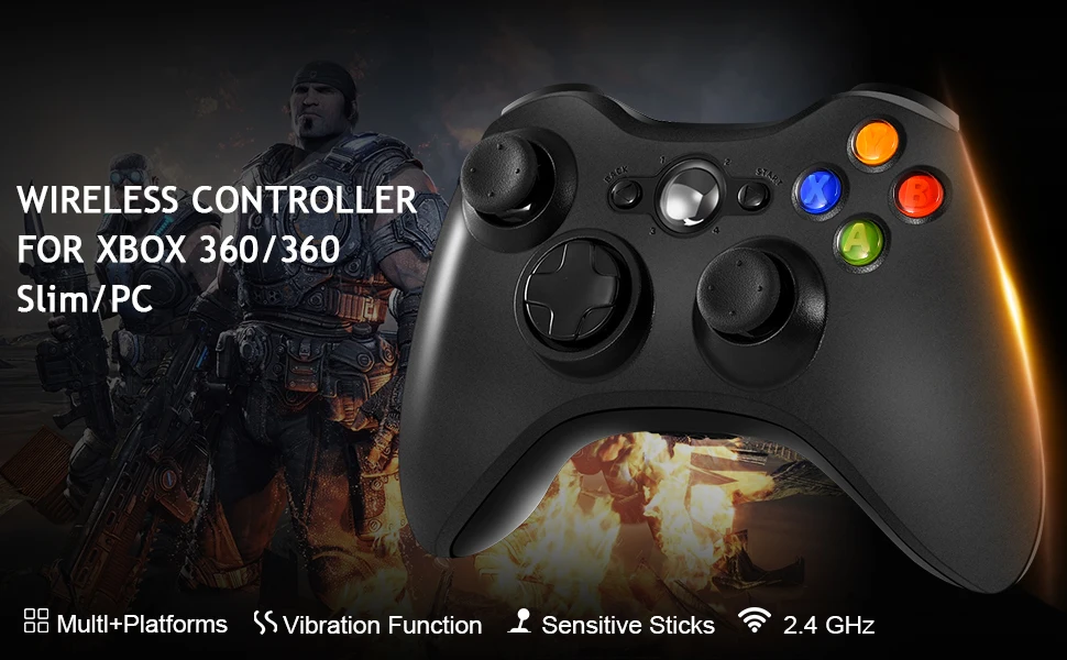 Геймпада Xbox 360 Беспроводной пульт дистанционного управления с 2,4 ГГц высокопроизводительный Беспроводной технология позволяет работать с свободно в пределах 30 футов, и позволяет 4 контроллеров, которые можно подключить к одному консоли. (Примечание: 1 шт. контроллер подключен к 1 шт. ресиверу, если Вы управляете 4 шт. контроллерами одновременно, вам нужны 4 шт. ресиверов).