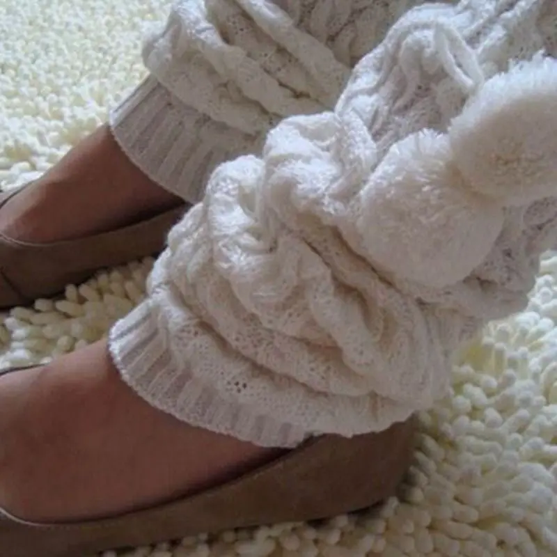 Классические однотонные вязаные гетры с косичками сохранят ноге тепло и комфорт.