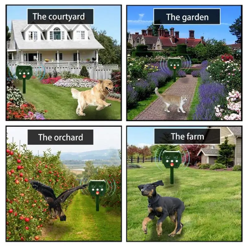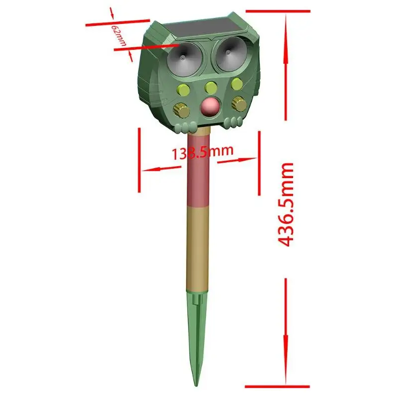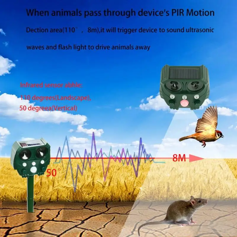 B. Продукт имеет функцию белого цветаСветодиодныйВспышка и мгновенное помехи. В то же время различные звуковые волны преобразования частоты 15-65 кГц будут издавать для различных ультразвуковых рассеивателей животных.
