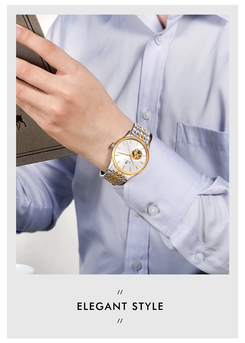 STARKING Mechanical Watch Men Automatic Self-wind Movt Skeleton Gold Stainless Steel Male Wristwatch Sapphire Men Watch 5ATM