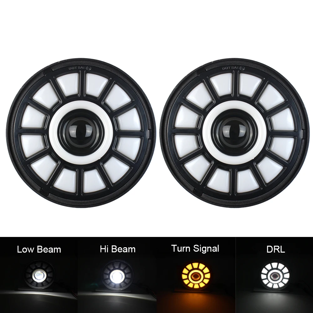 1 пара мотоциклетные 7 дюймовый круглый светодиодный головной светильник с Белый DRL желтый сигнал поворота светильник для Jeep Wrangle