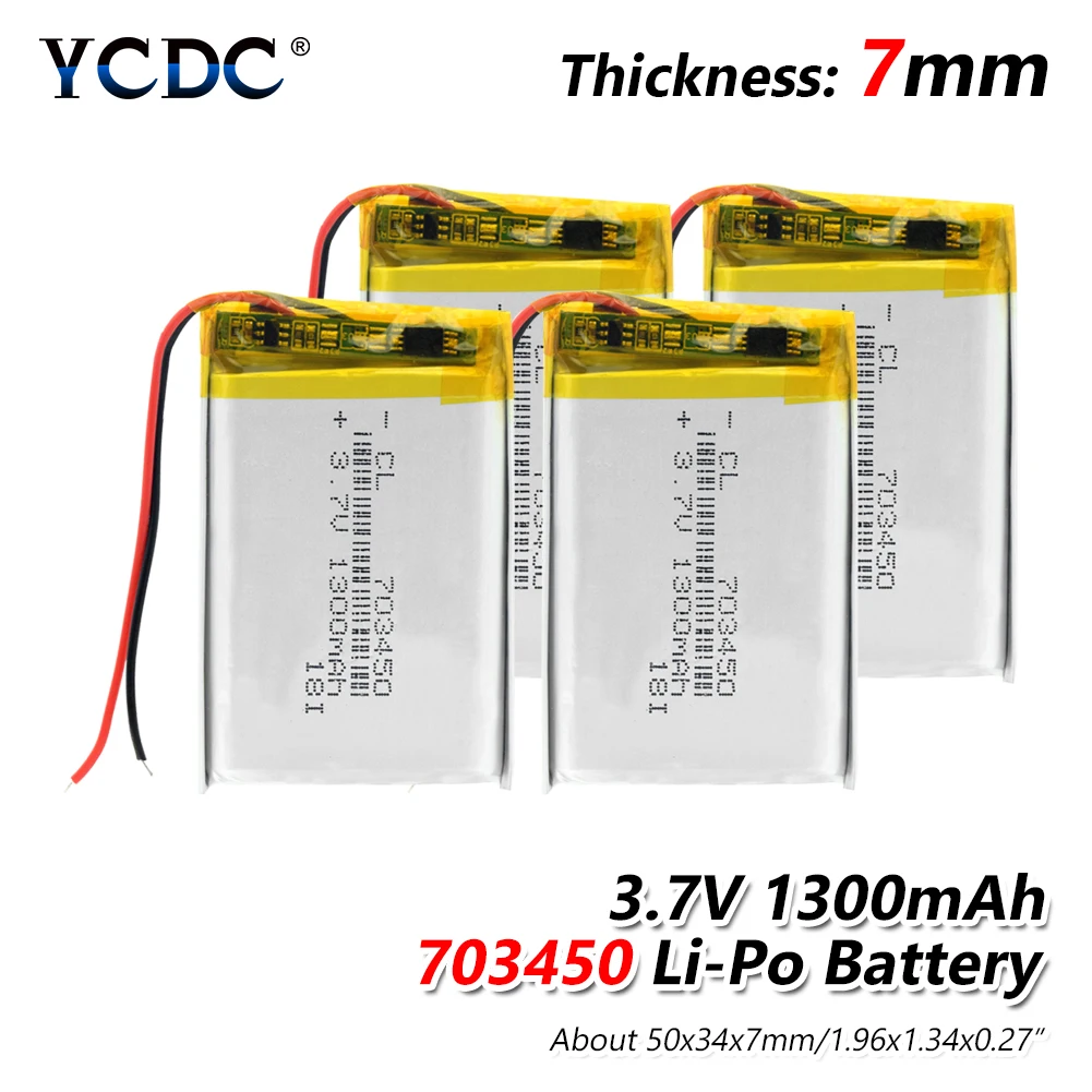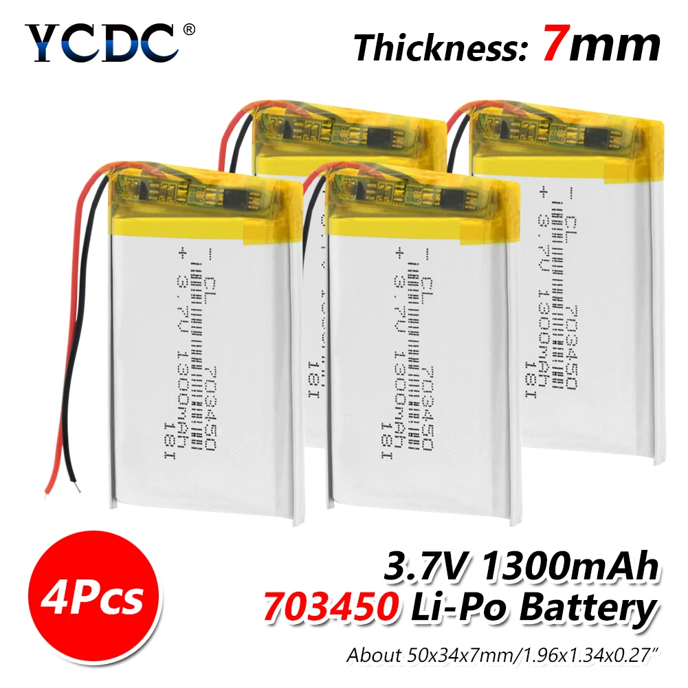 3,7 V 1300 mAh 703450 литий-ионная батарея 703450 Lipo Lipolymer батареи gps Беспроводная радио камера телефон Замена сотовый 4 шт
