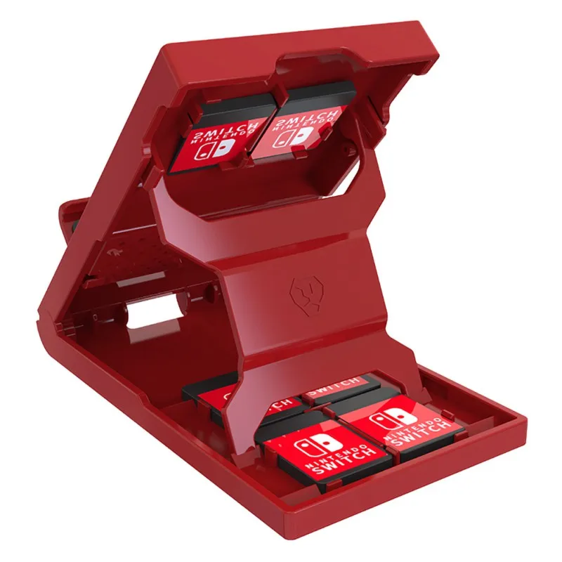 Особенность: 1. Высокая стойкость к истиранию, хорошая эластичность и ударопрочность. 2. Легкий и компактный, складной, легко носить с собой. 3. Подходит для хоста переключателя. 4. Экологически чистый ABS материал, красивый и прочный. 5. Для кронштейна основной рамы переключателя идеально подходит к корпусу, проводя хост. 6: две игровые карты могут храниться одновременно