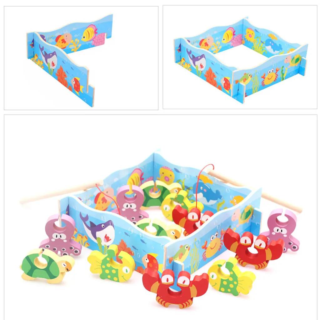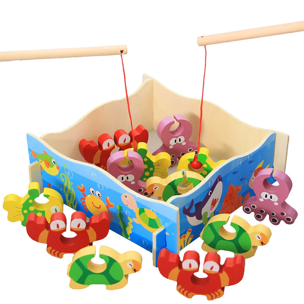 12 шт Деревянный DIY взаимодействие рыбалка игрушка набор рыба игра обучающая игрушка детский подарок