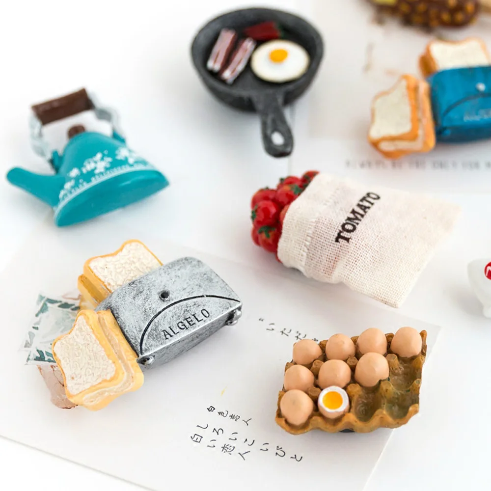 Cute 3D Resin Fridge Magnets Cartoon Bread Egg Refrigerator Message Sticker Kids Children Toy Home Christmas Decoration