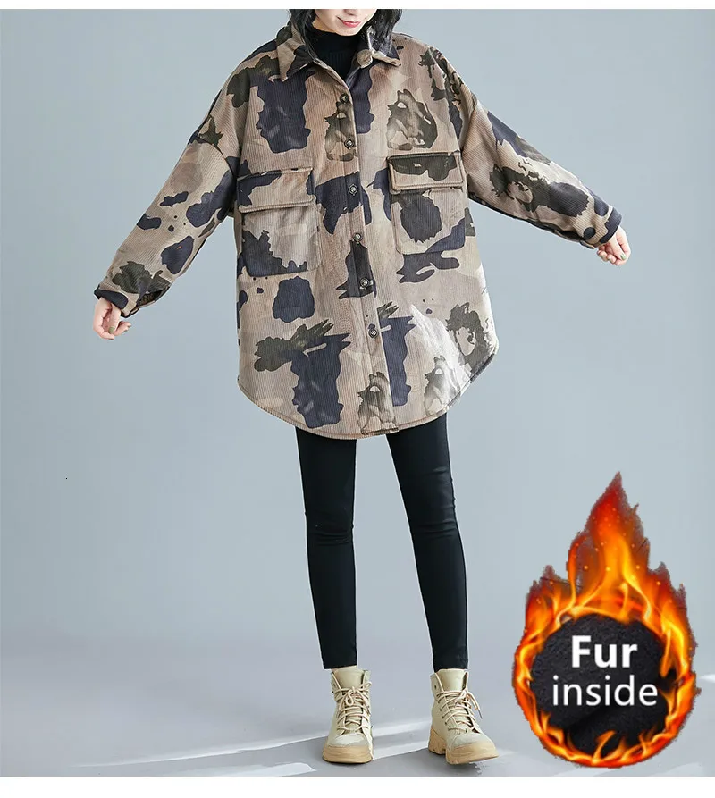 Korean Fashion Corduroy Thicken Vintage Quilted Coats