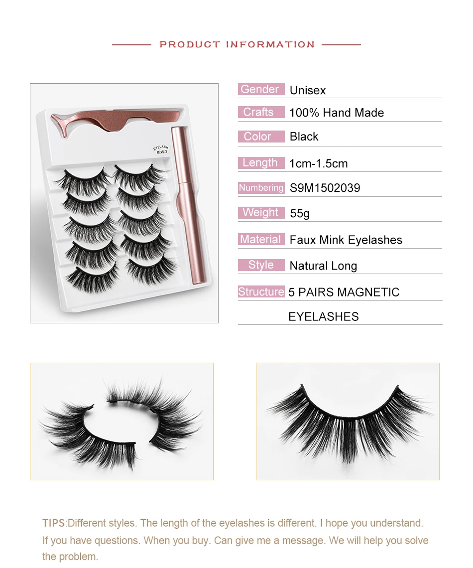 Товар: магнитная жидкая подводка для глаз и магнитные ресницы Материал ресниц: искусственный мех норки ручной работы Подводка для глаз: накладывает Ультратонкие магнитные частицы, вы чувствуете себя полностью естественным. Стили: более 20 стилей на выбор Длина: около 1 ~ 1,5 см
