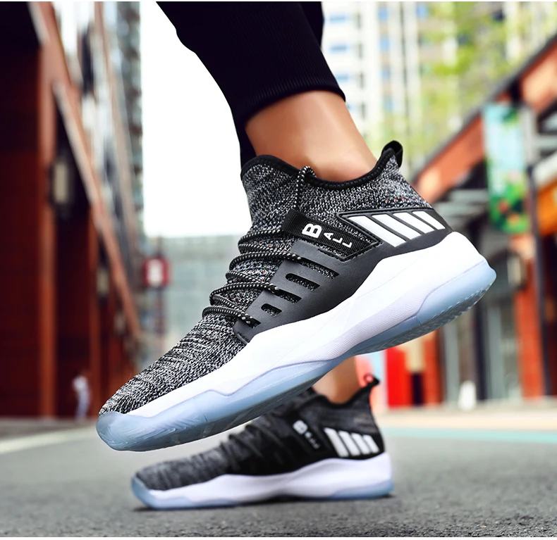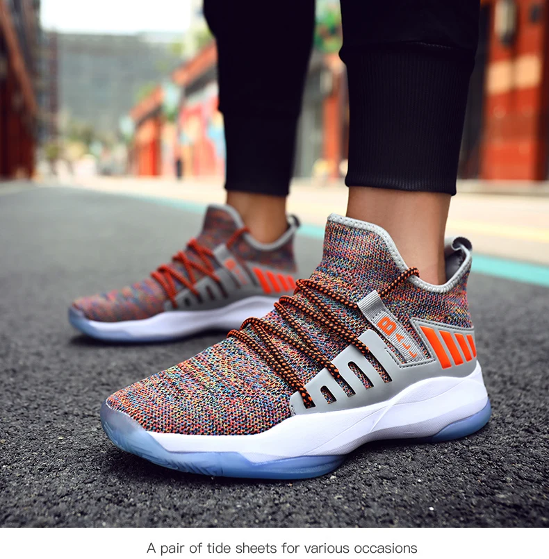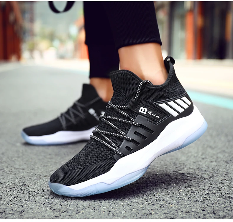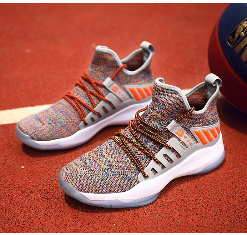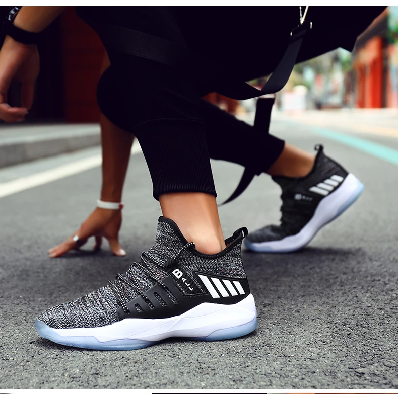Мужская баскетбольная обувь с высоким берцем, Мужские дышащие баскетбольные кроссовки Flyknit, мужские противоударные уличные теннисные кроссовки, новый стиль, 2020