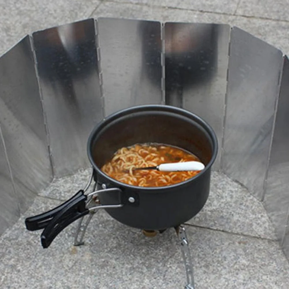 Название продукта: 10 тарелок ветровые экраны лобовое стекло алюминиевый сплав напольная газовая плита Кемпинг ветрозащитная кухонная плита складной