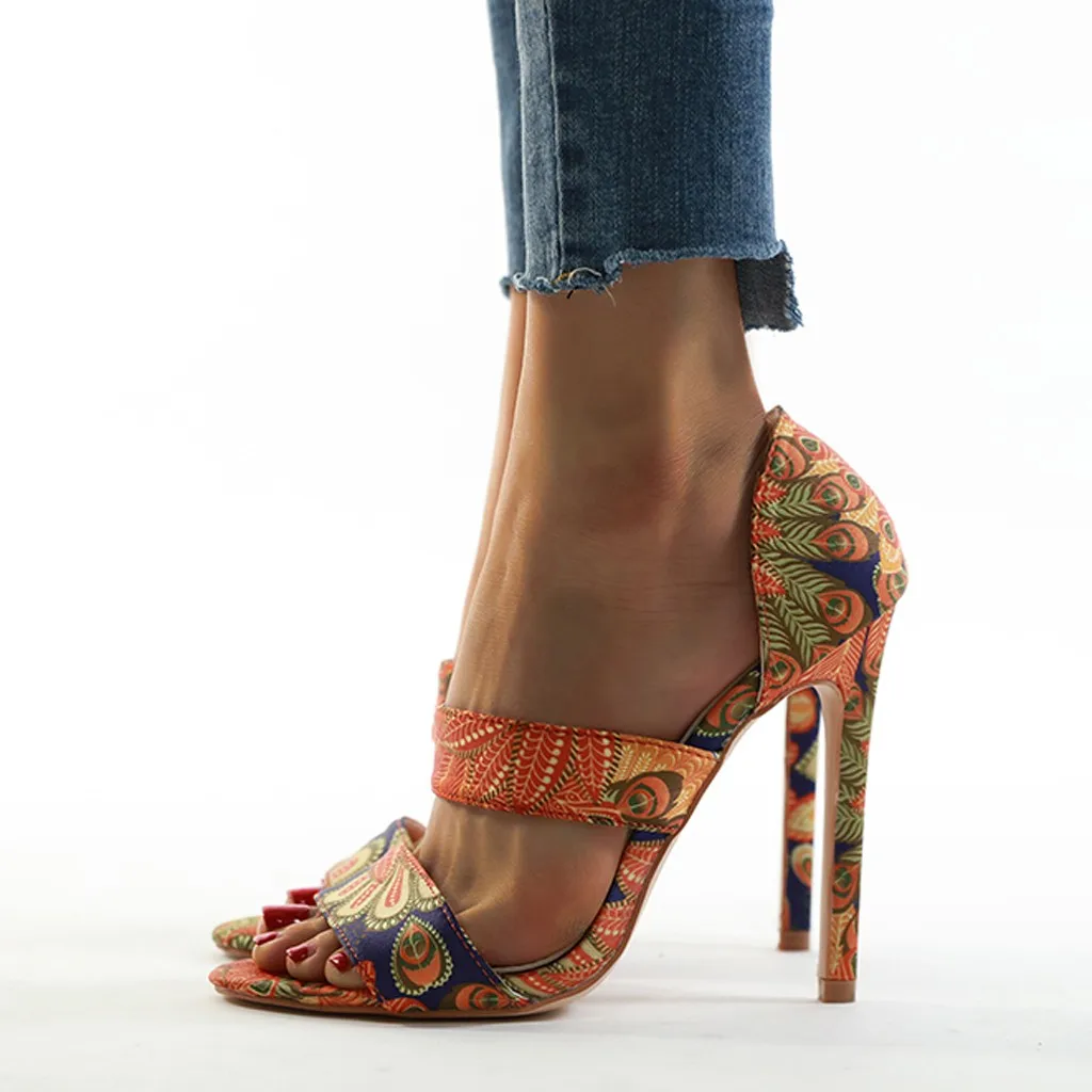 Women's Round Toe Sandals Stiletto High Heel Shoes Open Toe Sandals Casual Shoes