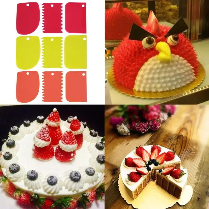 Классический скребок для торта, 3 шт./компл., инструмент для украшения крема для торта, многофункциональное лезвие, пластик, для торта, гладкий шпатель, кухонный инструмент