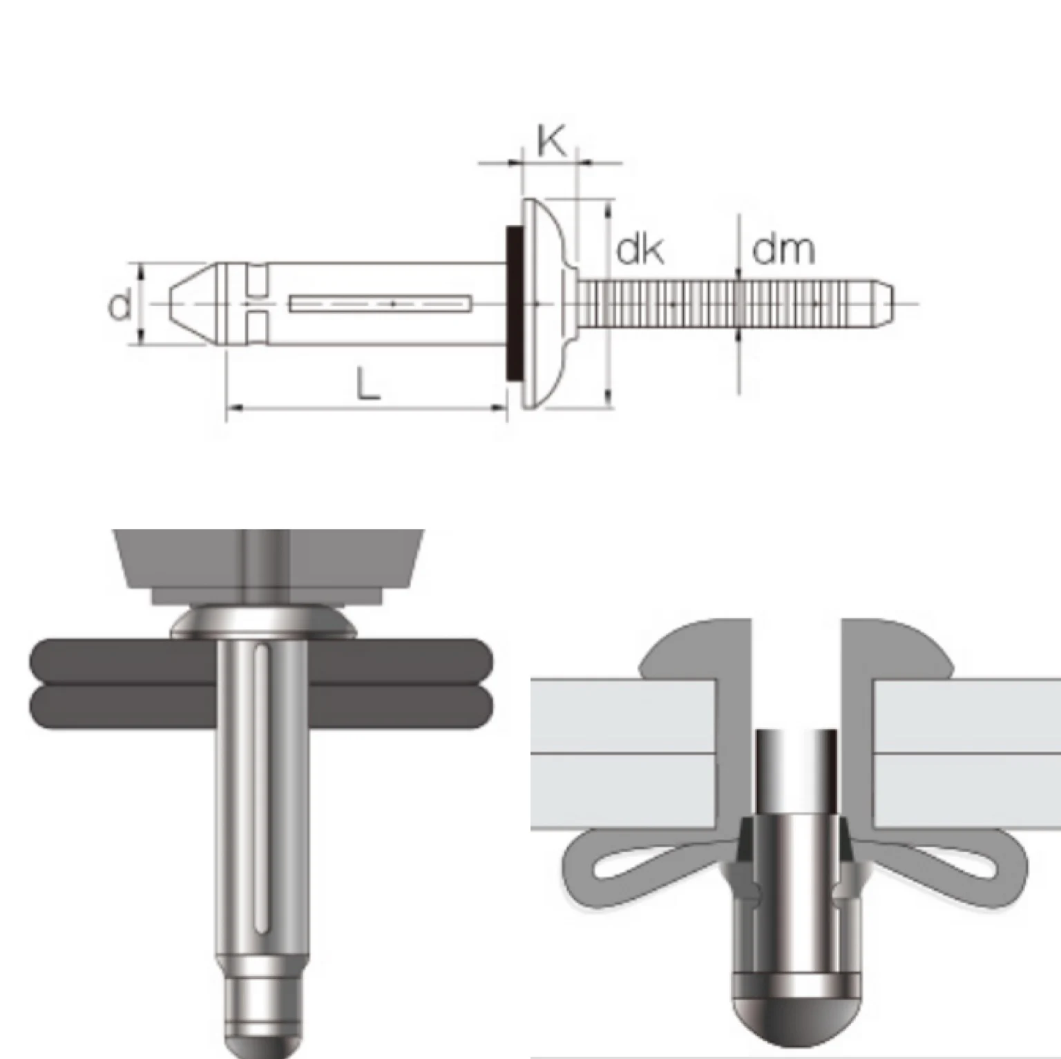 Трёхкрепкие заклёпки для рисования и установки