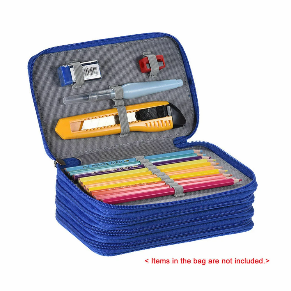 Описание: Этот товар является органайзером для карандашей, который изготовлен из носимого нейлона oxford. Пенал большой вместимости, 4 слоя и 72 Отверстия для вставки внутри. Многофункциональное использование: вы можете использовать его как чехол-карандаш, а также сумку для хранения косметики для путешествий или дома, легко носить с собой. Параметры