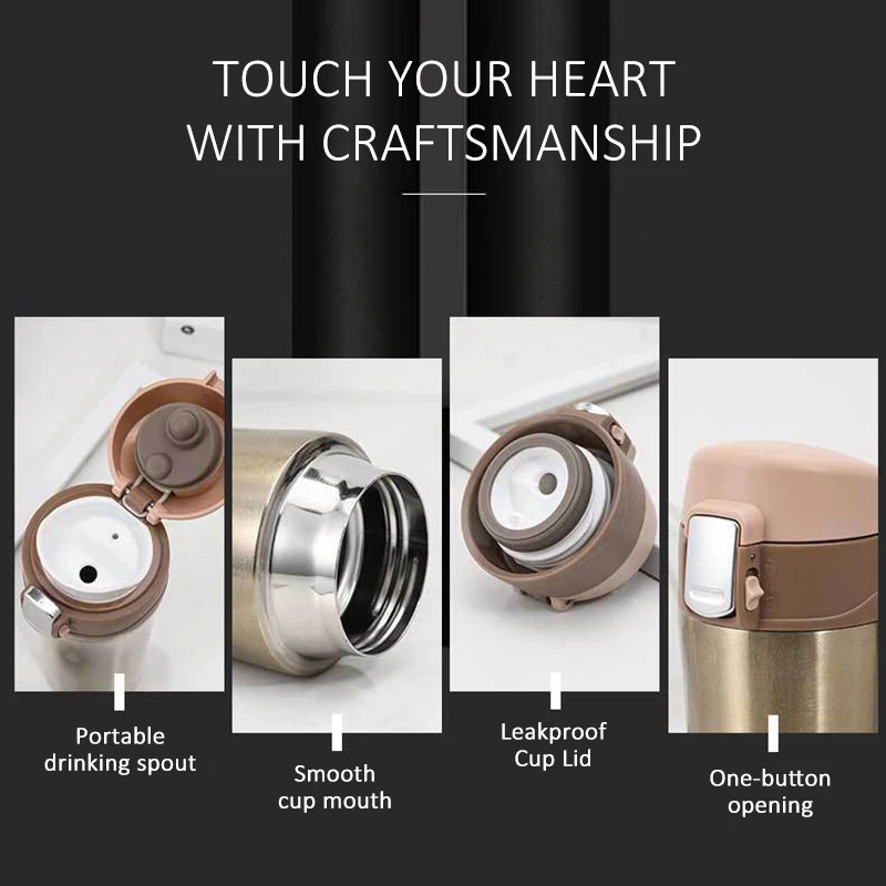 Двухслойная конструкция из нержавеющей стали может эффективно поддерживать температуру более 6 часов, которая подходит для горячей воды зимой и холодной водой летом.