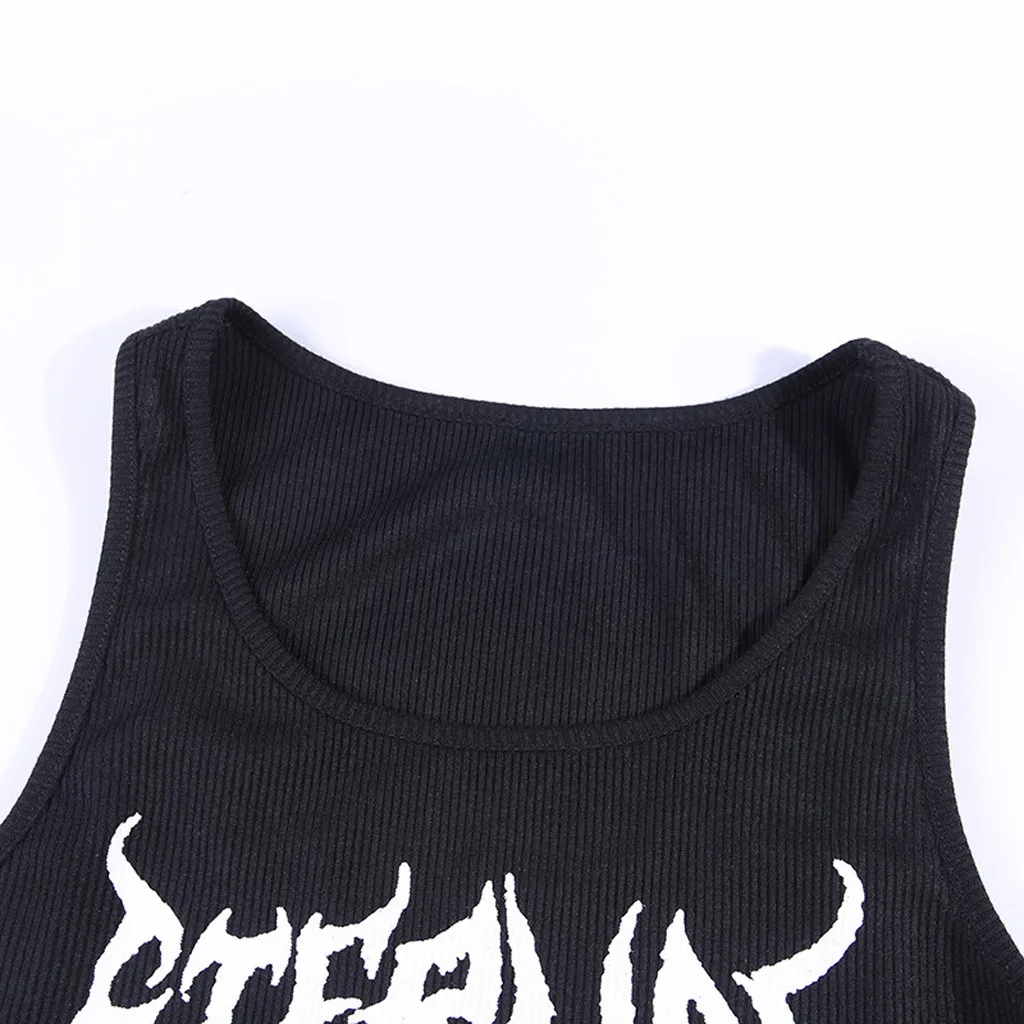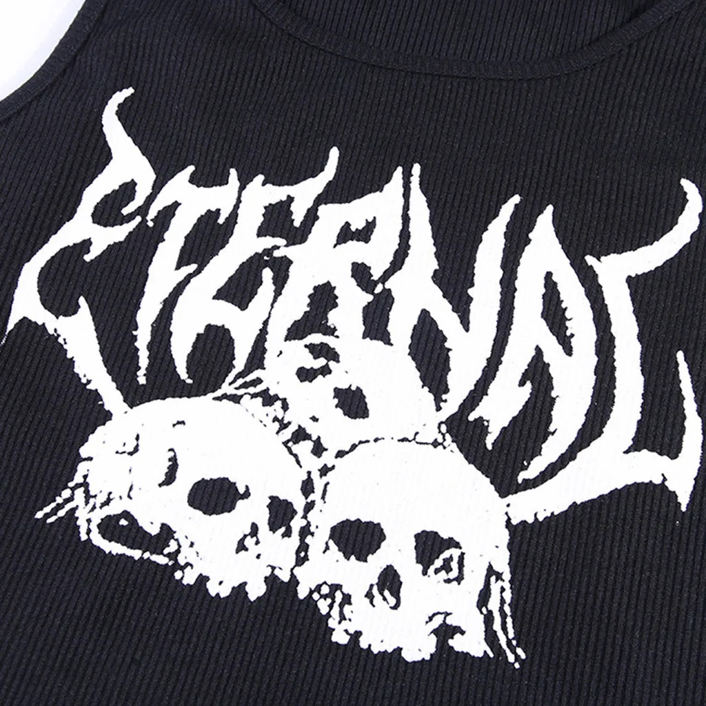 Женский короткий топ без рукавов, модный готический черный жилет с принтом черепа в стиле панк