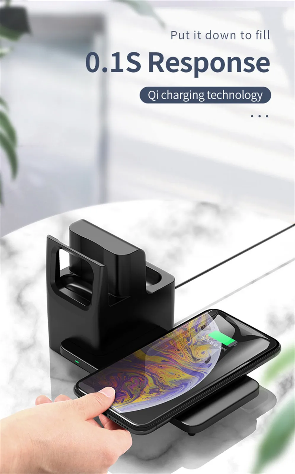 4. Подходит для всех устройств, которые подходят для Qi, таких как для iPhone Xs/Xr/Xs Max, для samsung для Galaxy S9/S9 + такие умные устройства.