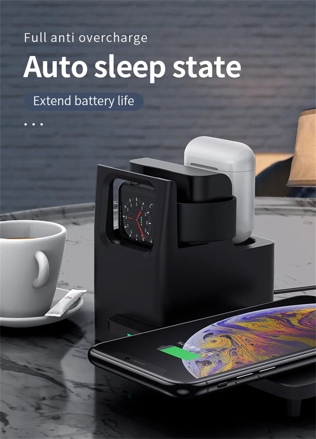 5. Удобно доки один набор для Apple AirPods и для Apple Watch серии и телефона, попрощайтесь с бесконечным клубок шнуров. Специально поддерживает режим ночной подставки Apple watch.