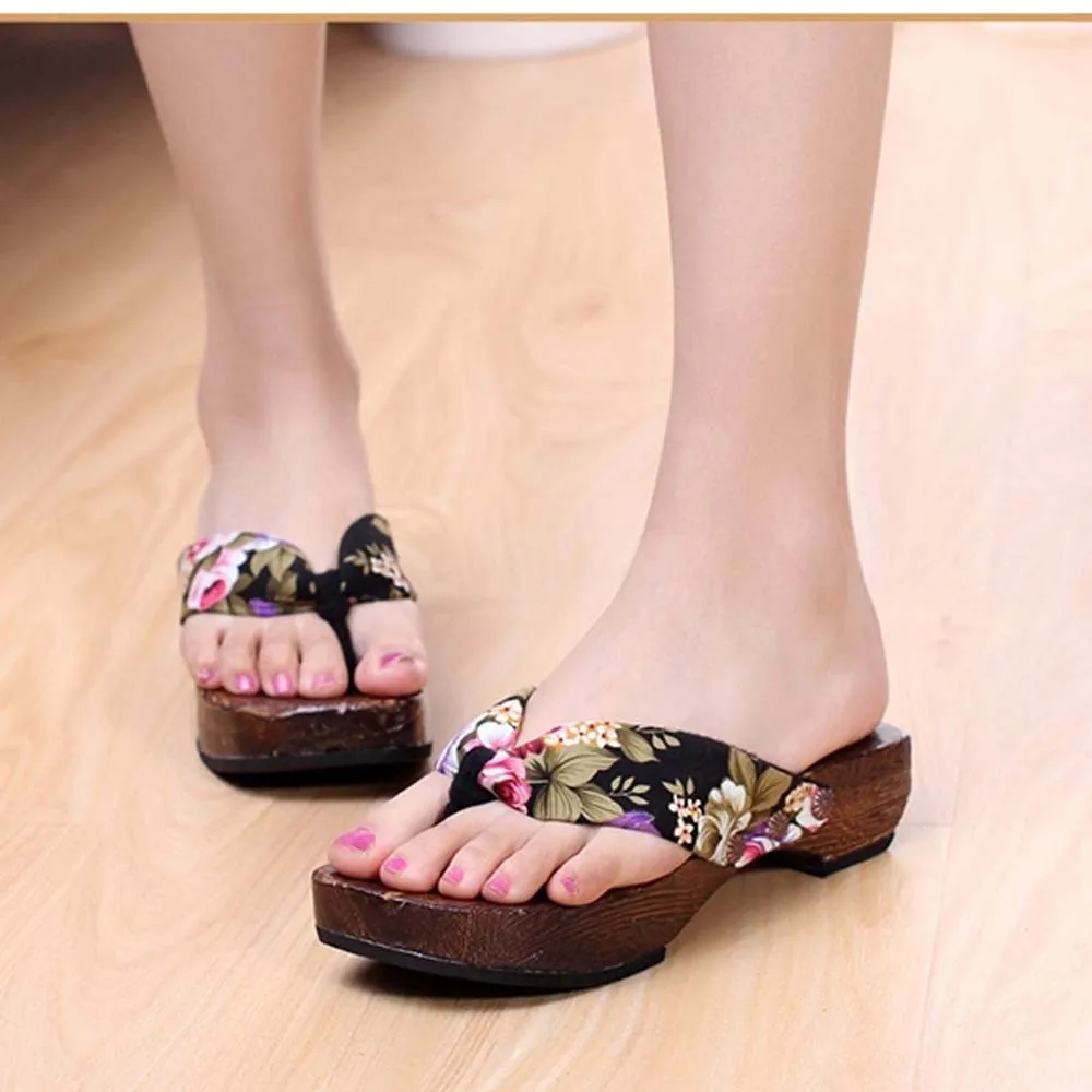 Летняя обувь на платформе; Деревянные женские сандалии; Деревянные шлепанцы; Вьетнамки