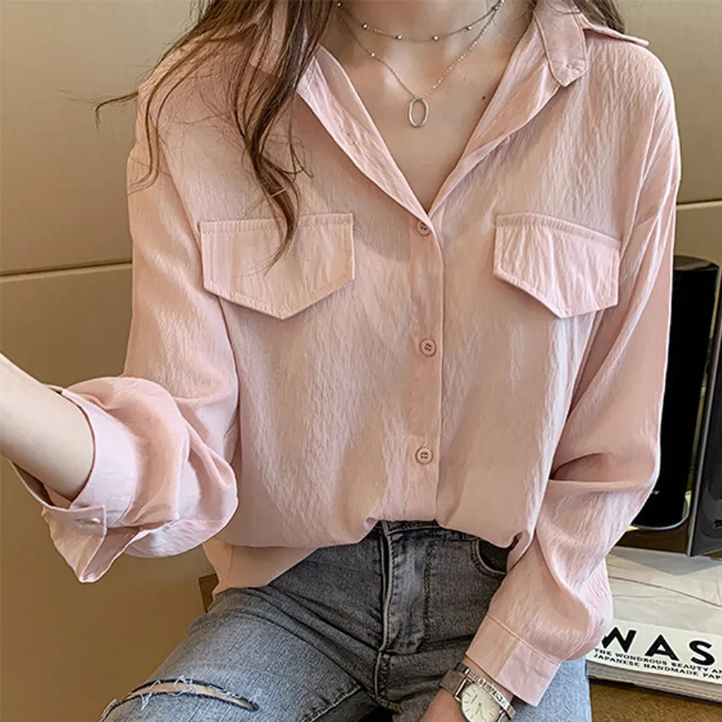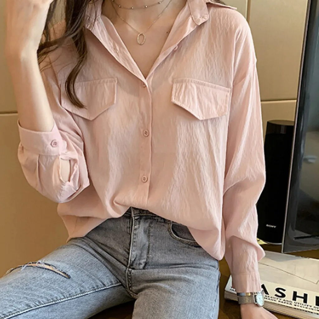 1.Features: Casual Tops,Long Sleeve,Pockets Button,Pullover Tops,Turn-down Collar ,Casual tops,Casual Wear,Stylish and fashion design,Autumn casual Tops.