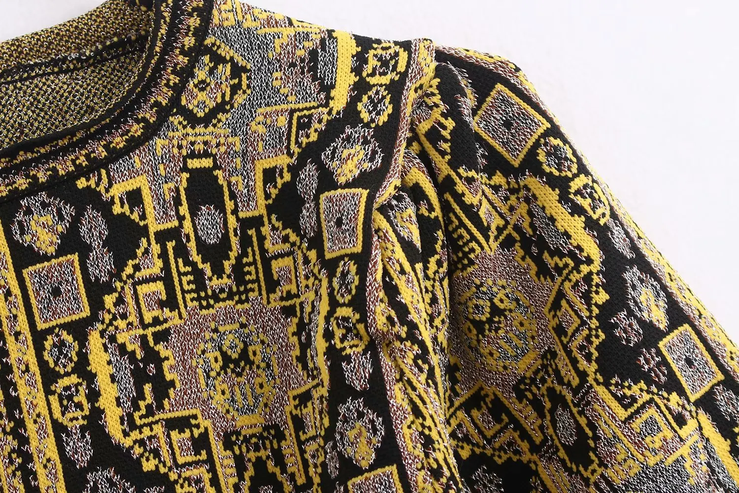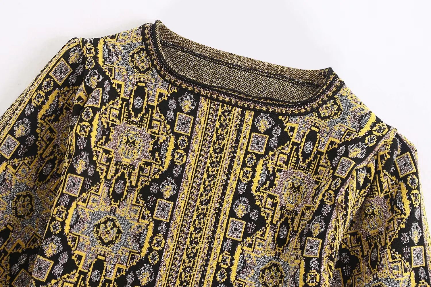 Новинка 2020, женское винтажное тонкое платье с тотемным узором и круглым воротником, офисные женские платья с пышными рукавами для отдыха, шикарные платья-корты