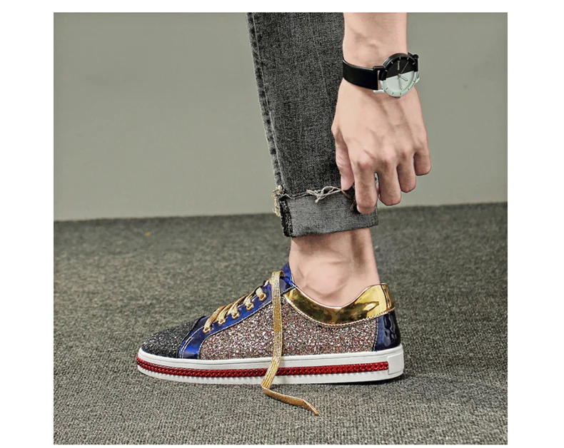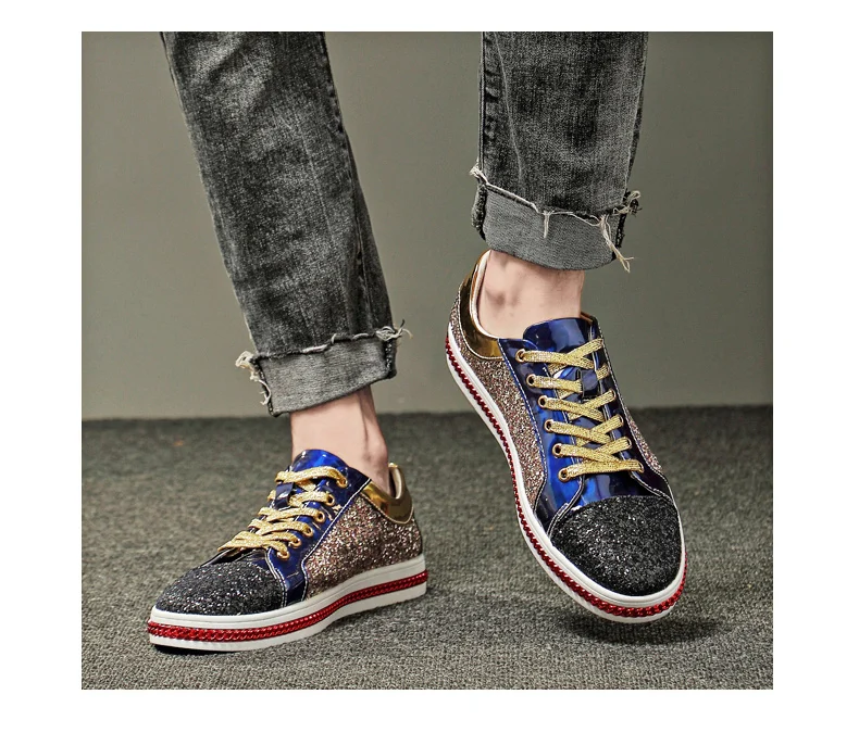 X Brand Fashion Shiny Mirror Shoes Men Casual Sneakers Classic Club Golden Silver Low cut Glitter Shoes Men chaussure homme 2021