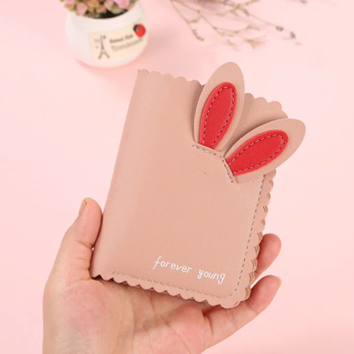 Женский маленький кошелек с милыми заячьими ушками, кошельки, держатель для карт, короткий дизайнерский кошелек, кошелек для девочек, держатель для наличных, J9
