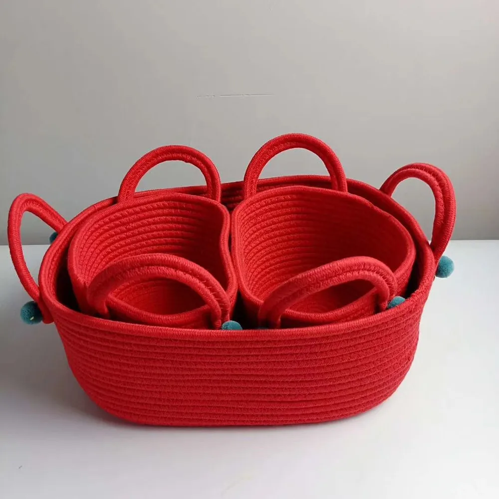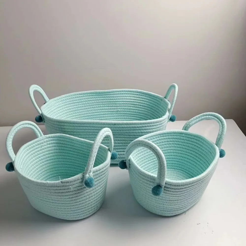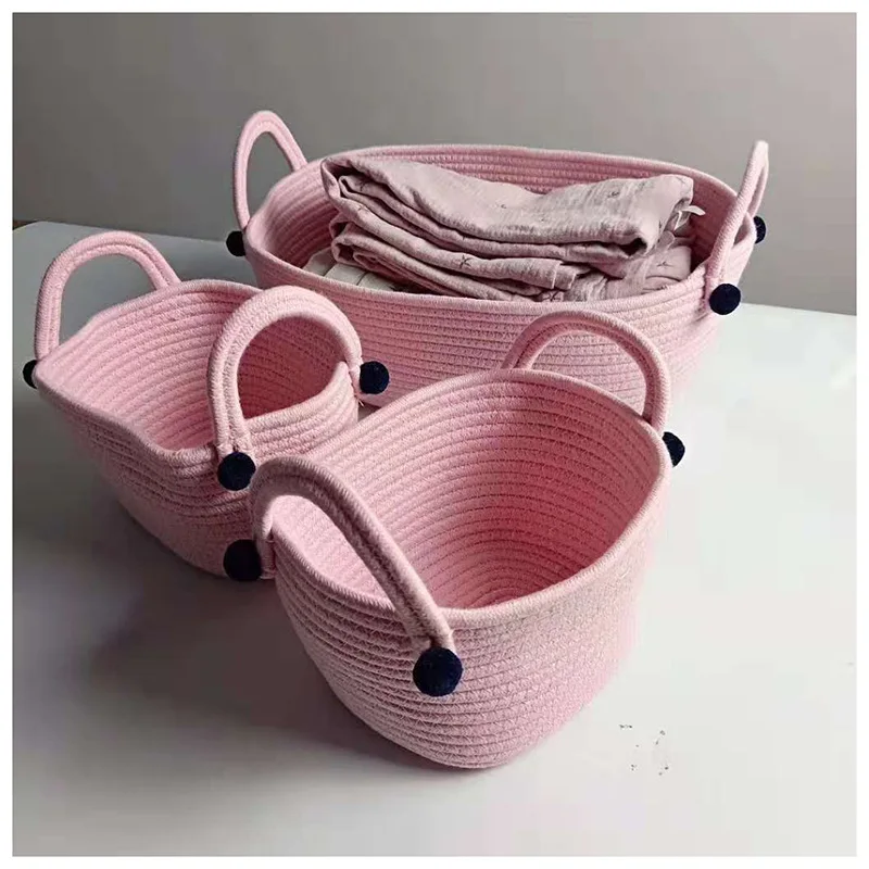 Оптовая продажа, корзина для хранения с хлопковой веревкой, корзина для грязной одежды, корзина для белья, розовая корзина с шариком, органайзер для детских игрушек, закуска, магазин