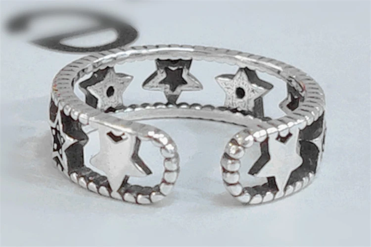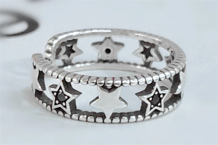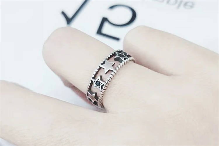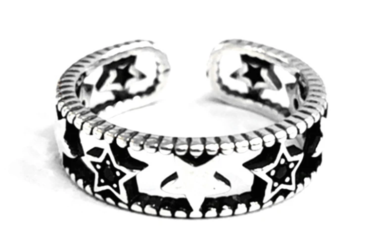 Кольца в стиле панк-рок Halo черный кубический цирконий, кольца со звездами, регулируемые, Ретро стиль, 925 пробы, серебряные, подарки для женщин, женские аксессуары