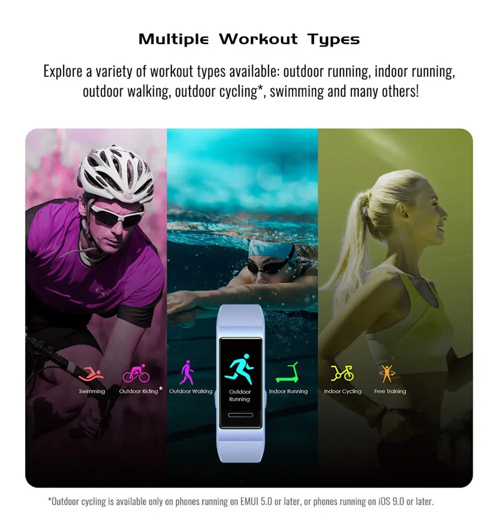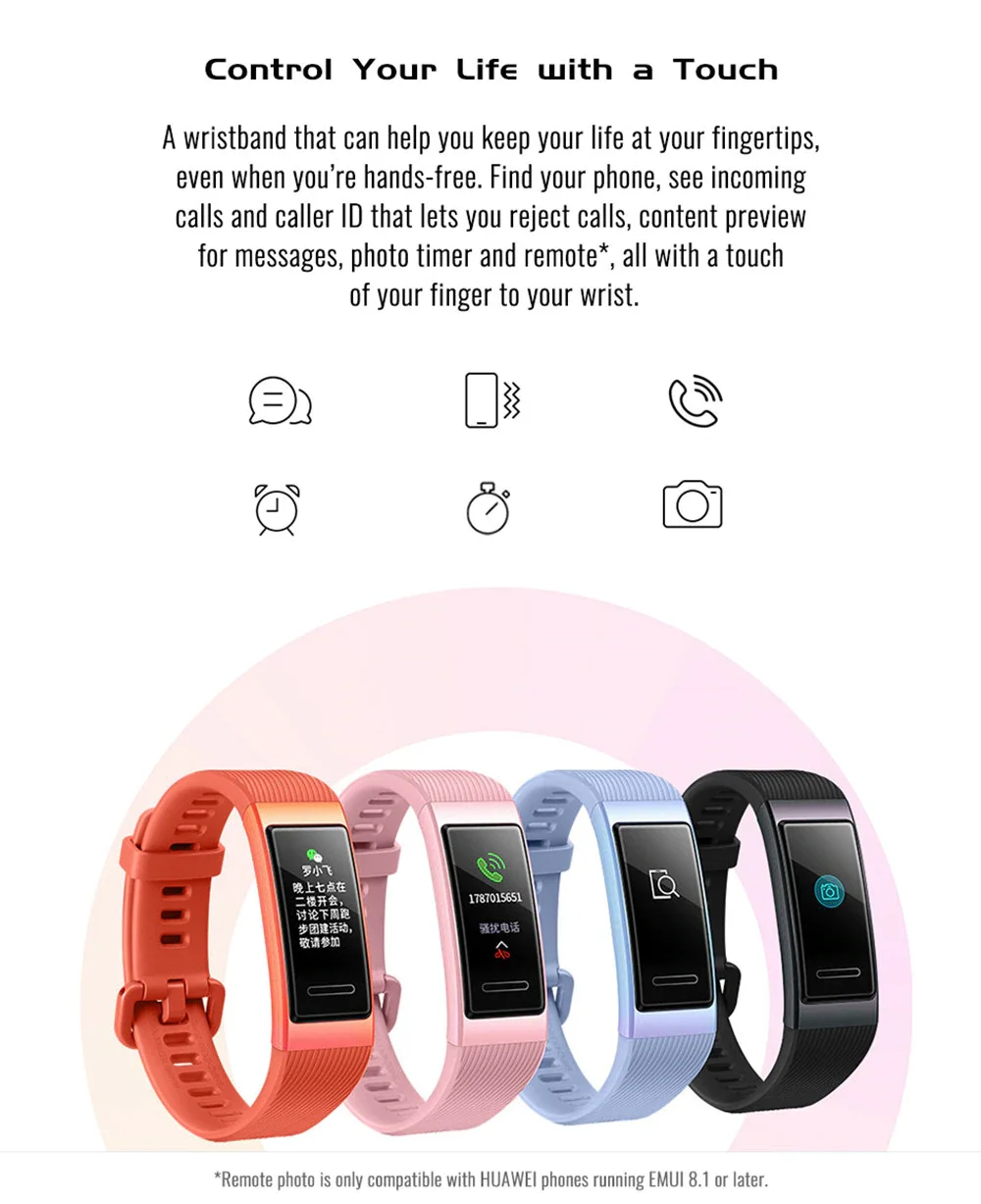 Умный Браслет huawei Band 3 Amoled с цветным сенсорным экраном и датчиком сердечного ритма, браслет для сна