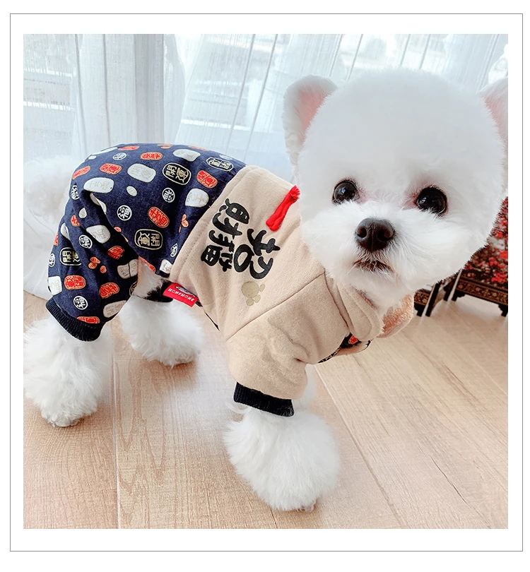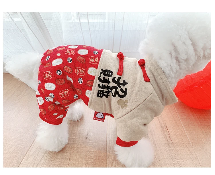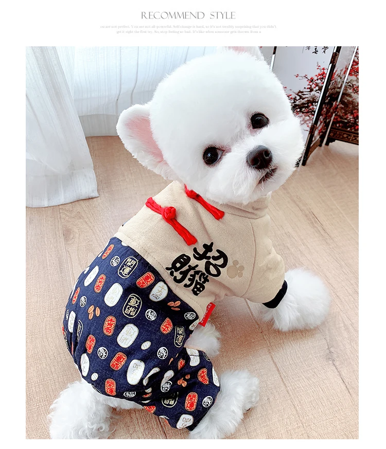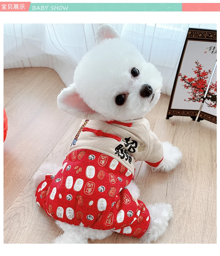 Tradition Chinese New Year Spring Festival Clothes For Dogs Four Legs Overall Chihuahua Yorkshire Small Medium Animal Winter Pet