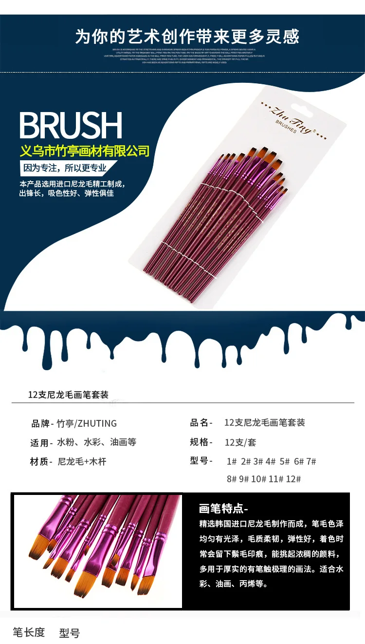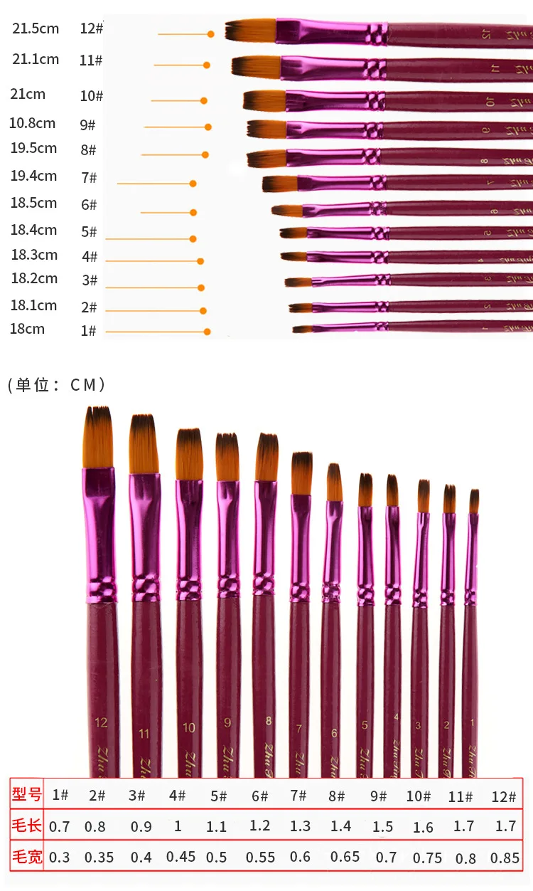 12 шт акварельный набор кистей для рисования фиолетовые нейлоновые волосы плоская заостренная кисть для рисования акриловая кисть для масляных красок Акварельная ручка товары для рукоделия