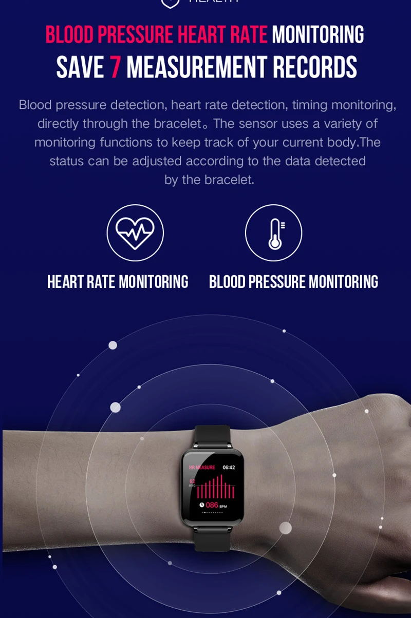 Умные часы для мужчин и женщин, монитор сердечного ритма, монитор артериального давления, монитор сна, водонепроницаемые спортивные часы